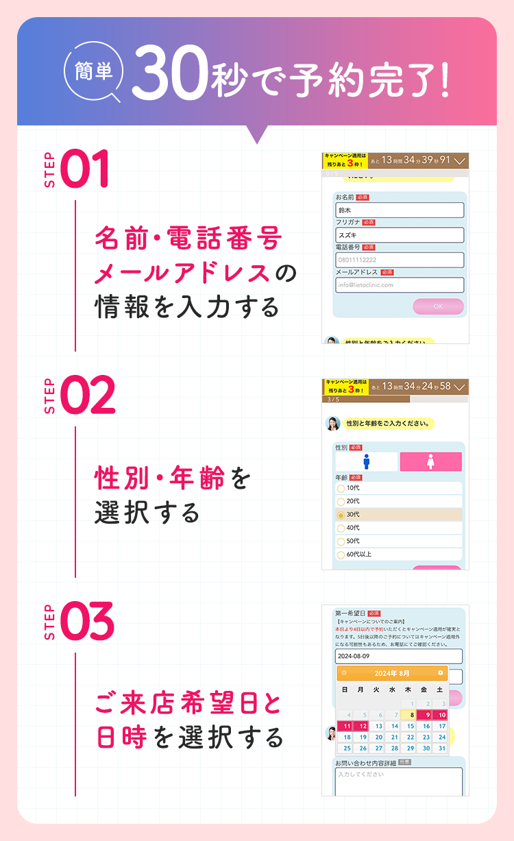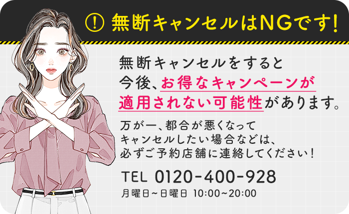 当日&無断キャンセルの方には手数料として3,000円をご請求させていただきます
